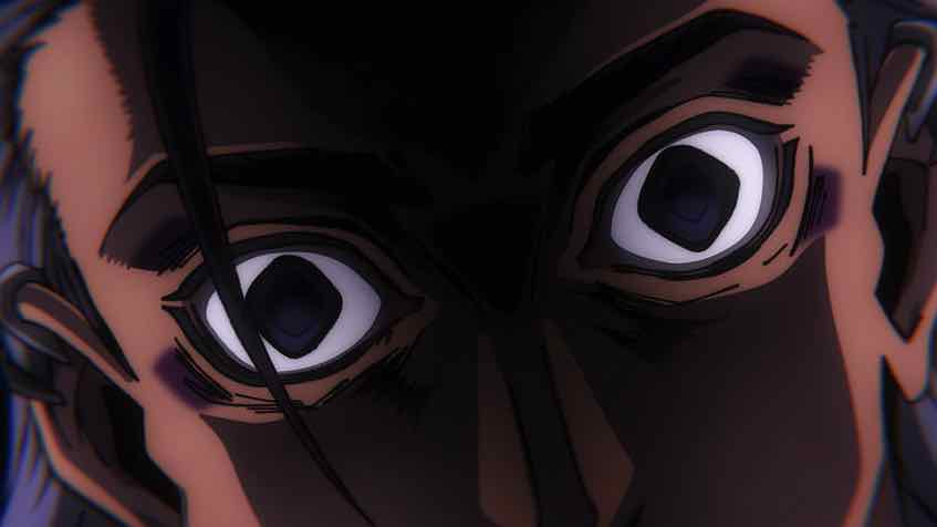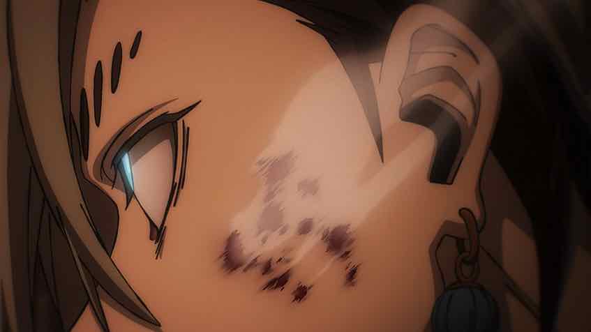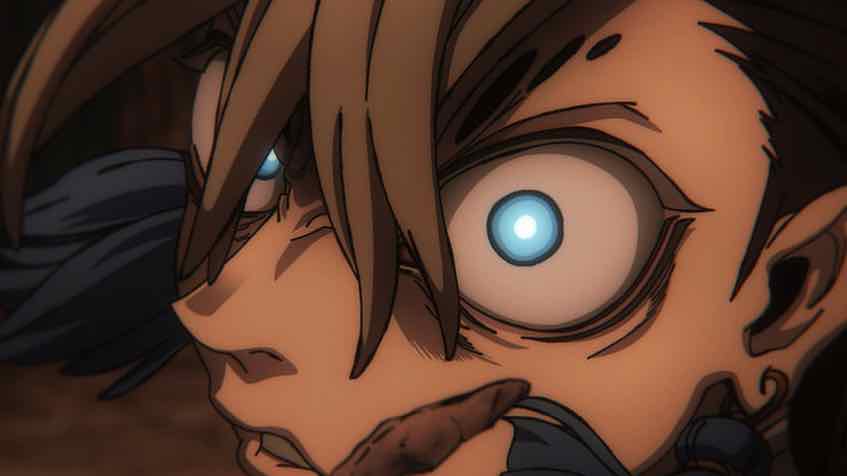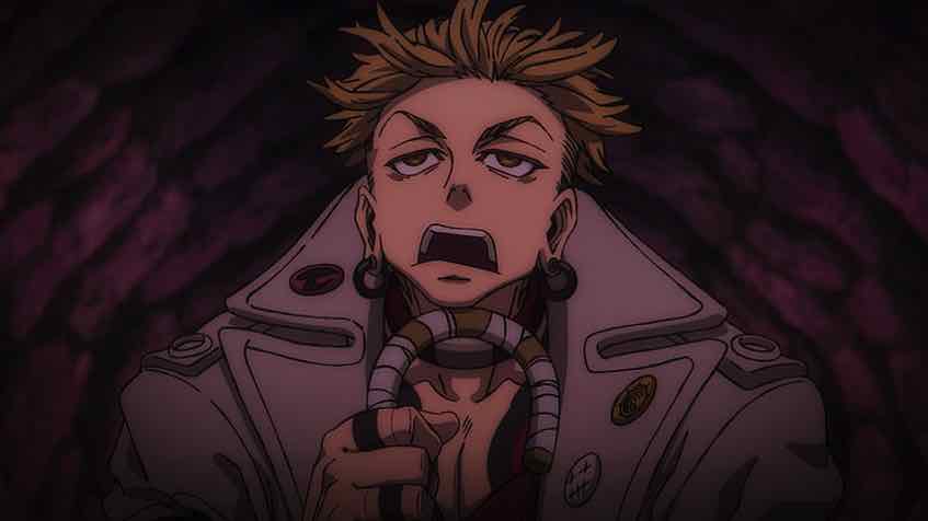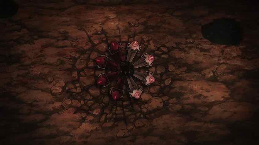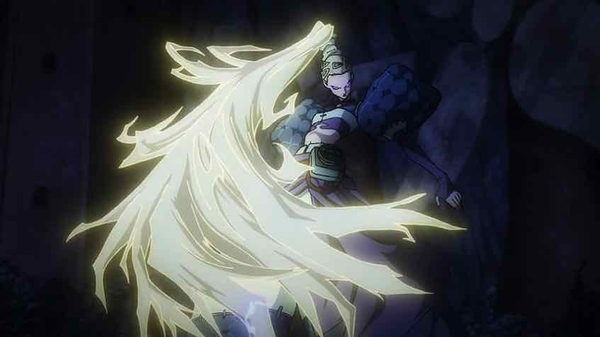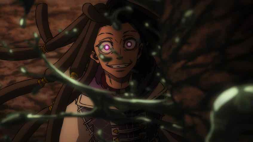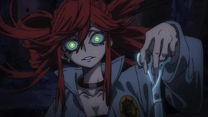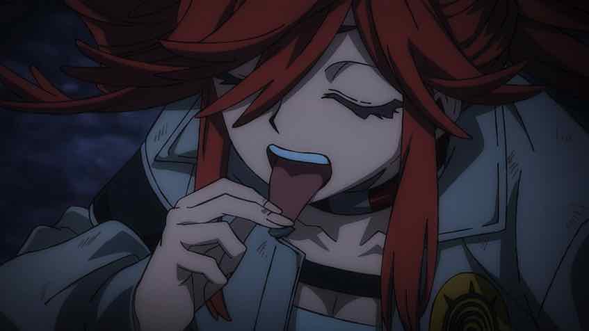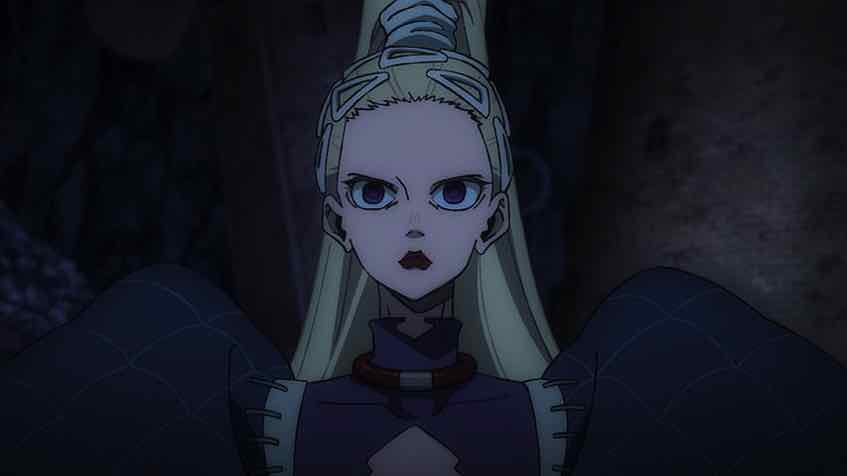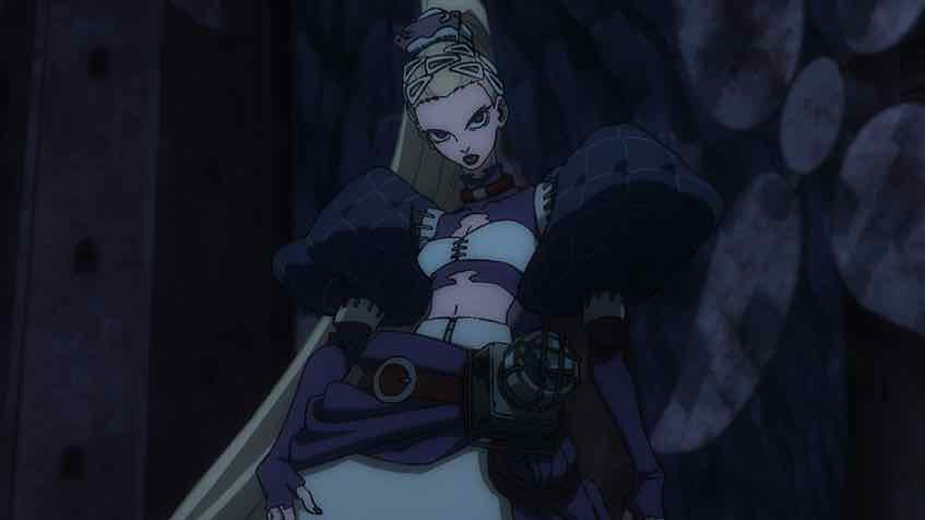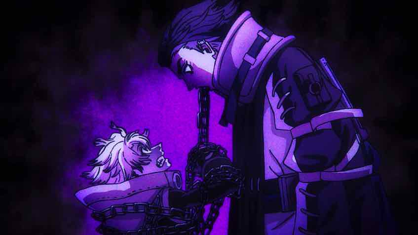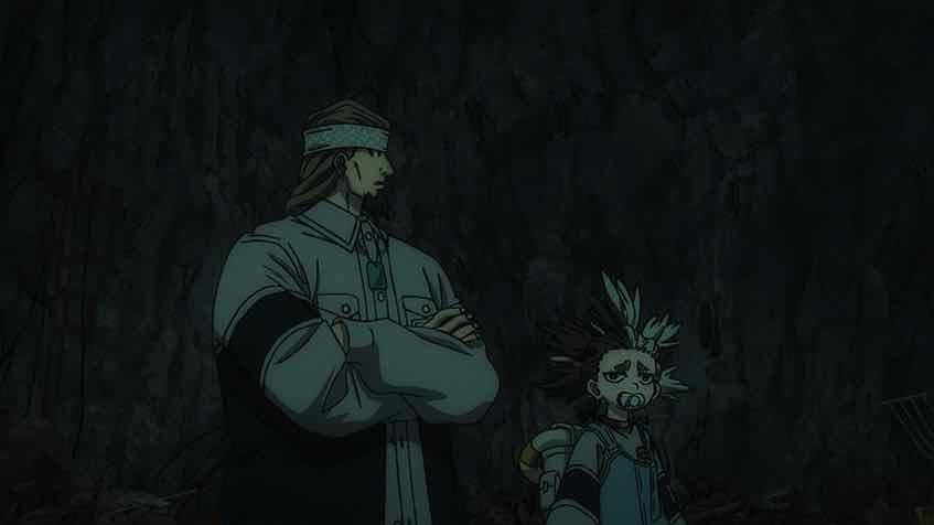 A familiar dynamic is rekindled as Zanka is reunited with Jabber Wonger (one suspects Jabber requested that). Enjin is paired off with a near-silent little fellow (Shimono Hiro) who hides behind a pile of trash as he watches him. Bro Santa and Dear Santa wind up with an older gent (Ohtsuka Akio) who confirms that this warren is indeed underground. Riyo ends up with a long-haired blonde lady named Noerde (Tamura Mutsumi) whose Jinki is almost certainly her comb. And a cockroach – uncensored, which is very rare (quite silly, that) for anime – which she’s surprisingly terrified of. Only Guita Hebby Fantasia appears to be alone – apart again from a roach, but she seems perfectly fine with that.