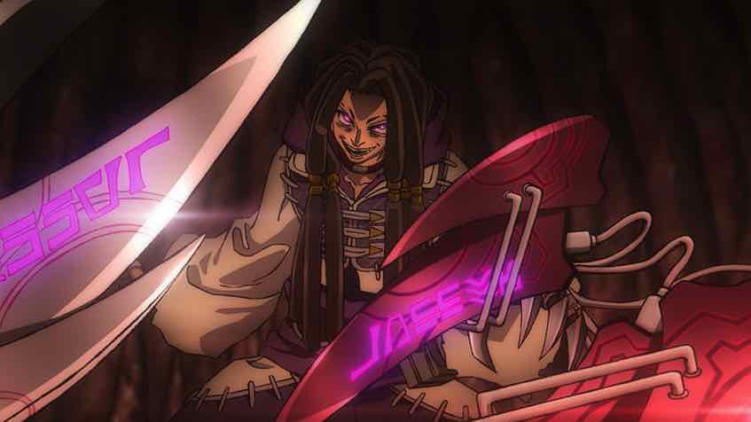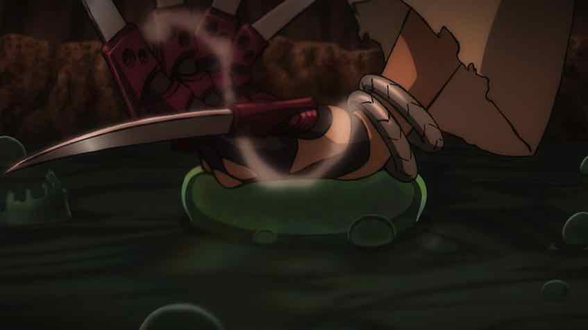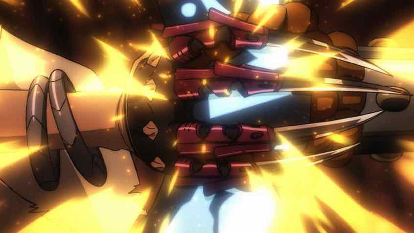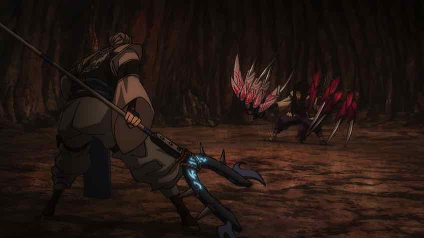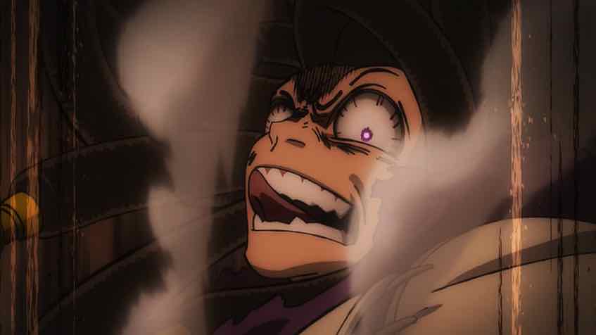There are some sparks – literally, though verbally too – between Noerde and Riyo. Riyo’s scissors against Noerde’s comb – suggesting a hair-based attack – seems like a bad matchup for the home team. But the secret to Noerde’s power is static electricity, which seemingly turns the tables on Riyo. Most of the action, though, is with the Jabber-Zanka pairing. And that’s just how Jabber wants it – he lives for this sort of thing. He reveals a couple of gears we haven’t seen yet – first, using his left claws to take on the character of the goopy green trash lava bubbling up from the ground. And then something else altogether – looking almost like an evolved form of his earlier self. Does Zanka have another level to match?