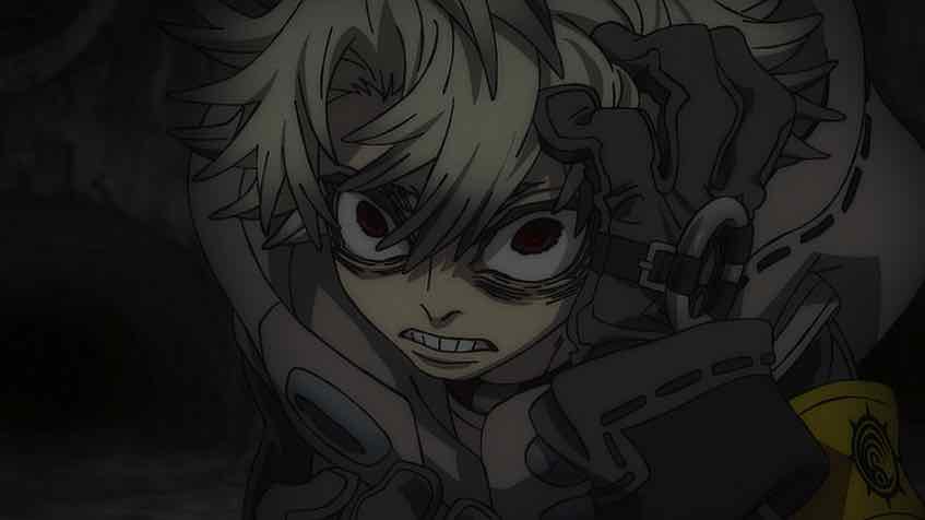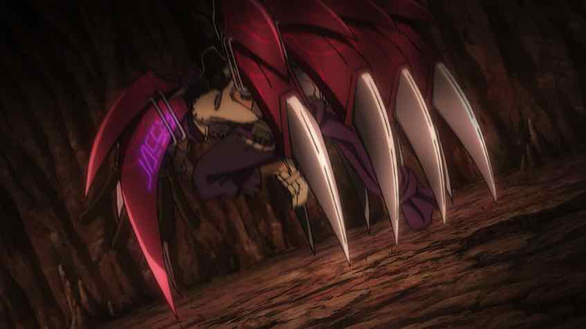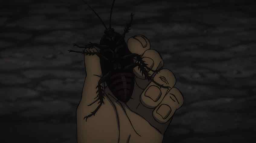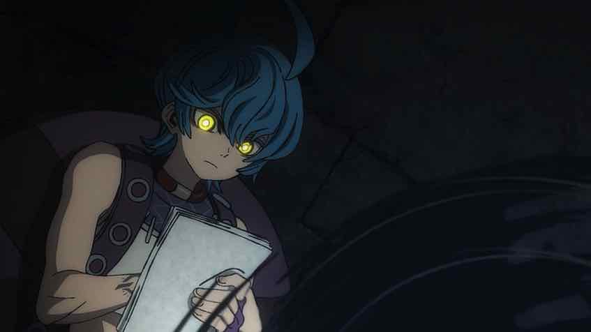 Another window shows us Rudo and Zodyl. Zodyl is eerily calm but a strangely intense fellow, like a cult leader. He’s clearly well aware that Raiders like Bundus and Jabber have their own agendas, but seems unconcerned about it. His interest in Rudo stems from the fact that he seems to see a bond between them – a shared look in the eyes. And Jabber says the two of them smell the same. Zoldyl talks of the “shock to the system” he wants to deliver to the Spherites – to make them disgorge the toxic common sense they don’t know is poisoning them. And as if to prove his crazy bona fides, he delivers a shock to Rudo by devouring a cockroach. Gokiburi are so taboo in polite Japan that anime usually pixelates them; Gachiakuta not only shows them, it shows us this. It is indeed a shock.
