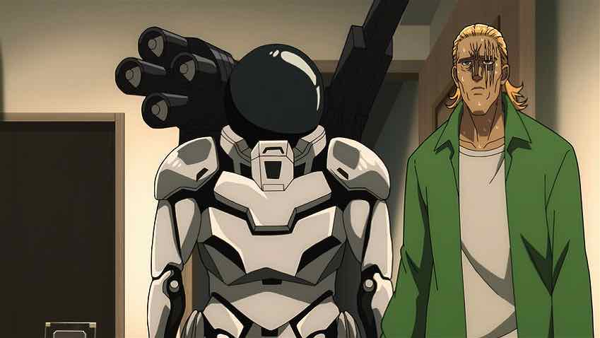 Garou is the one exception. And more and more it seems like if this season is to be salvaged, any hope lies with him. Any time extended conversations happen with anybody else I start to drift. Was OPM always this talky – or is it a matter of a mediocre production impacting the dialogue as much as the visuals? Unfortunately Garou spends most of this episode a bloody, unconscious heap so unsurprisingly, it’s not too compelling. We get a brief conversation between Zombieman and the head of the House of Evolution about limiters (and Saitama) that’s sort of interesting. But the rest of the dialogue here is pretty blah.