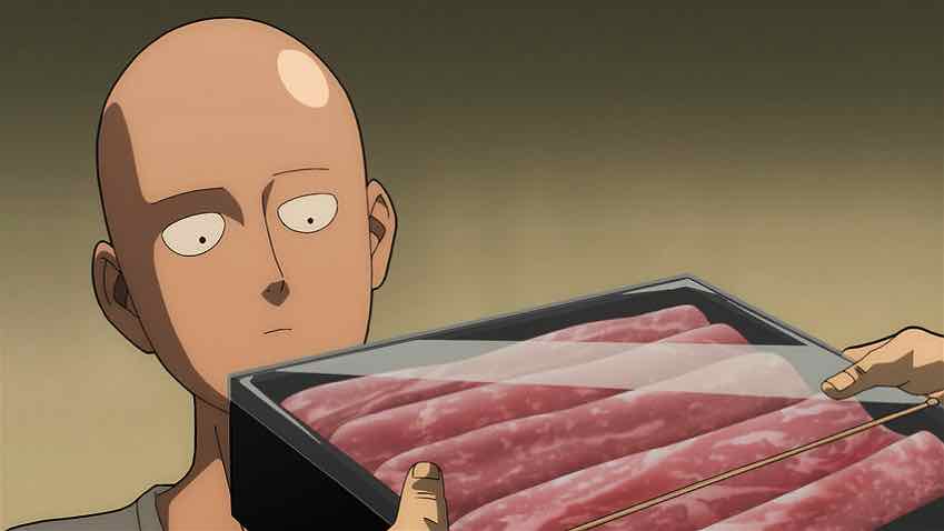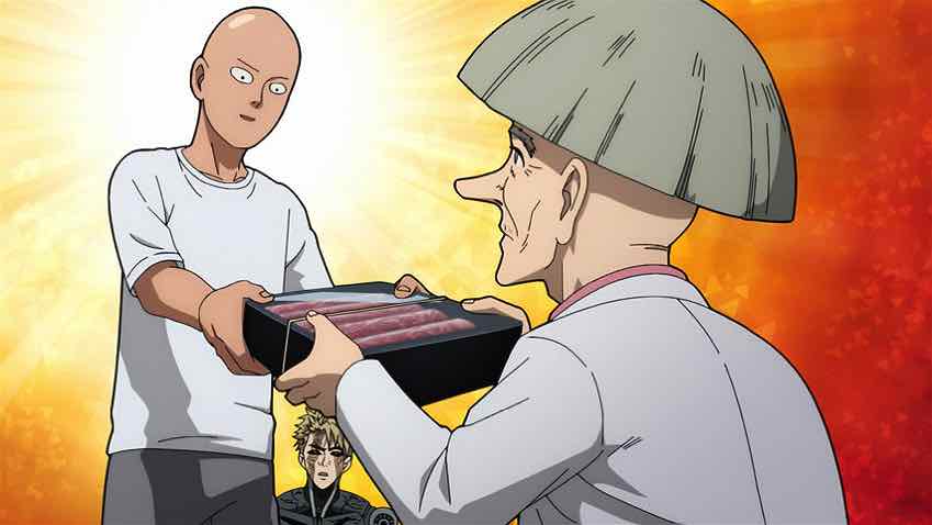 Meanwhile Saitama has arrived home, completely unaware that he’s cleaned Garou’s clock. He’s mainly upset about leaving the napa cabbage at the family restaurant, but Blizzard has kindly rescued it. She’s mainly upset about his stiffing her on the check. Saitama would like everyone to leave but the crowd keeps growing, as Dr. Kuseno (last seen way back in S1, I think) shows up to check on Genos. He brings a gift pack of premium beef to thank Saitama for looking after Genos, which Blizzard is horrified to learn Saitama plans to dump in the hot pot (she’s right to be). This is all headed somewhere besides intermittently amusing time-wasting, but the prospect is frankly not all that appealing the way things are currently progressing.