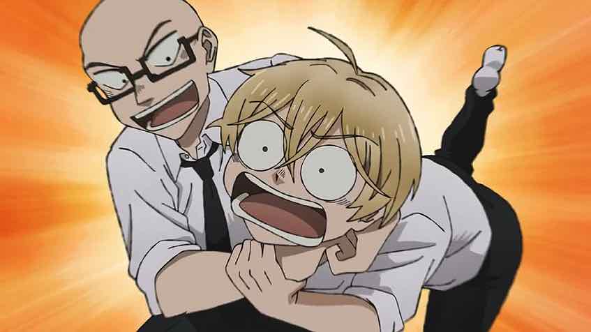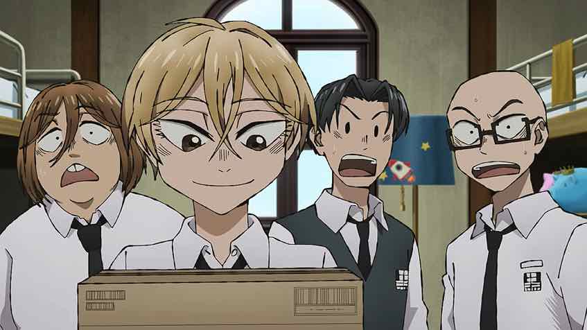 We also meet Amaya-kun, one of Sanda’s roommates who promptly joins the crazy parade by zapping Sanda with a taser and tying him (and Fuyumura) up in the destroyed science lab. He knows Sanda’s secret and taunts him over it, and tries to get Santa and Fuyumura to kiss (which is highly weird in and of itself). He has a reason – his family cake shop needs a revival of Xmas to revive its fortunes. But as with Fuyumura, are we supposed to condone psychotic behavior because the culprit has a problem they want to solve? There’s irony here of course – do we overlook terrible behavior by children because they’re children?