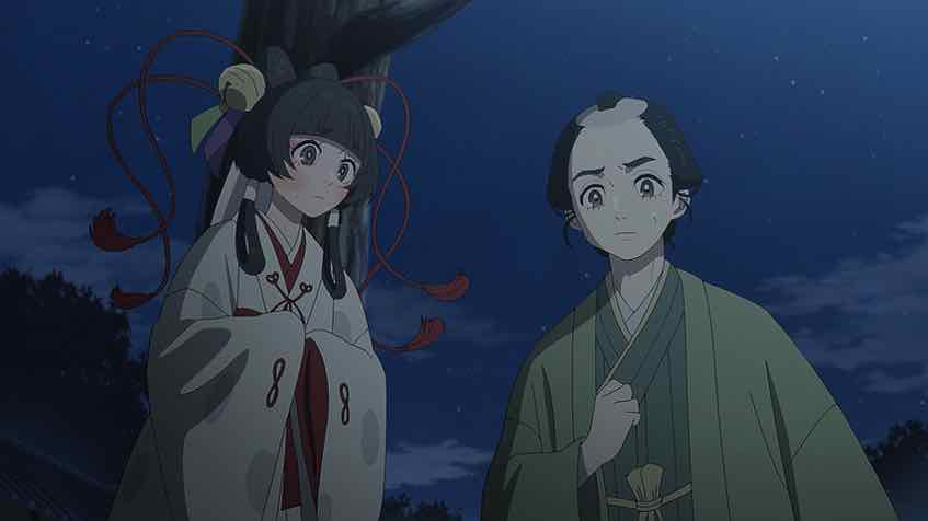 Measured and thoughtful it is, then. For a show with a deep fantasy element, it’s pretty exacting (so far) in the mechanics of its events. And Ichitarou’s situation is quite relatable. Everyone worries about him constantly, which makes him feel guilty every time he tries to live a normal life. But living under the thumb of his family and associates – and especially the two youkai guardians – is stifling and unbearable. It’s no wonder he’s sneaking out at night to meet “Matsunosuke” – though just who Matsunosuke is we don’t yet know, Somehow I keep thinking it’s the supposedly (or perhaps actually, given the premise) deceased older brother but I have no evidence to back that up.