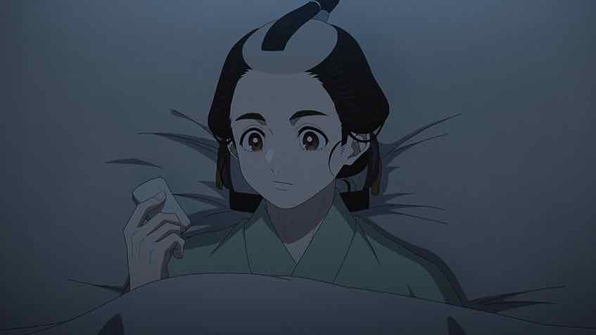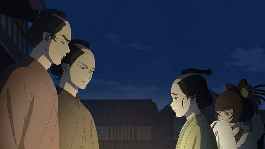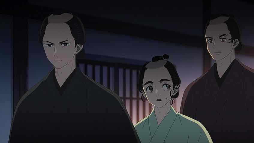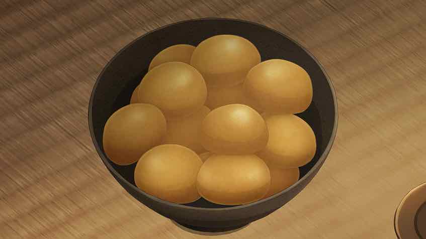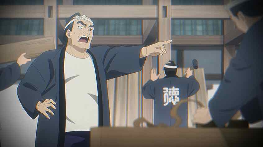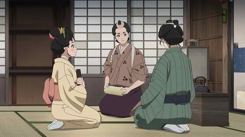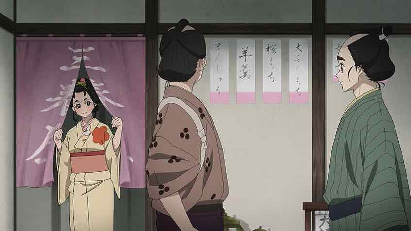 It seems that Ichitarou has a love interest – Oharu, who works at the sweets shop that’s the one place he is allowed to go (but not alone). Eikichi is the son of that shop, which gives he and Ichitarou something in common. His problems are different – he’s a hack when it comes to cooking anything. We also meet the local police chief, who’s taking bribes from the Nagasakiya and probably lots of other people. In addition to inhaling an entire bowl of manjuu (that was oddly fascinating to watch) he shares the tidbit that the body Ichitarou found and left for a retiree to find and report was found with its head cut off. The mystery deepens.