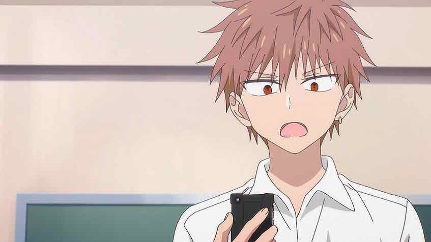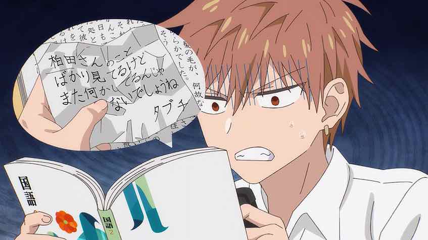No question Kao ni Denai Kashiwada-san to Kao ni Deru Oota-kun is quite consciously playing with tropes using its own spin. The gag here does run the risk of getting repetitive, but so far those twists are enough to prevent that. The “LIME” thing was pretty standard but taking things from Oniwarada’s perspective was a nice turn. He sees Kashiwada as a savior and Oota as his nemesis (“That piercing!”). But eventually he starts to lean on Oota-kun as a means of breaking up the tension in class (which I’ve seen teachers do for sure).