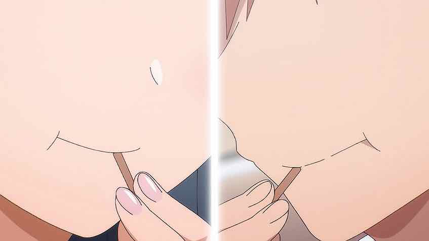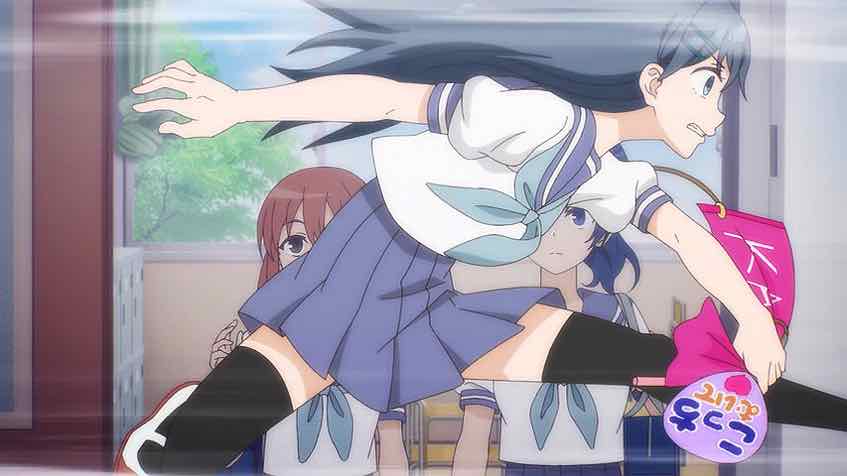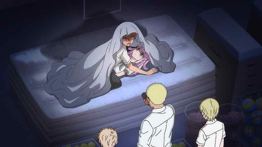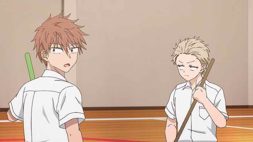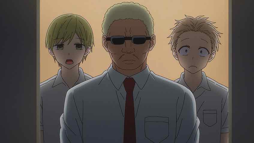 The whole Tabuchi business was, as expected, kind of a miss and the less said the better. That’s a cliche without a requisite twist. But then we get a genuine reimagining as Oota and Kashiwada are locked in the storage room. All the expected boxes are checked, right down to the misunderstanding trope when they get rescued. But the dynamic between the two of them is what makes this work – it’s pretty darn cute.