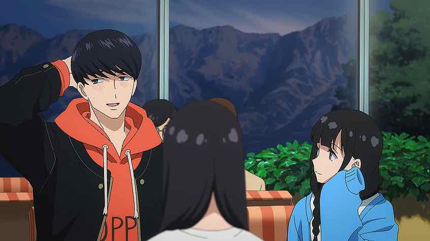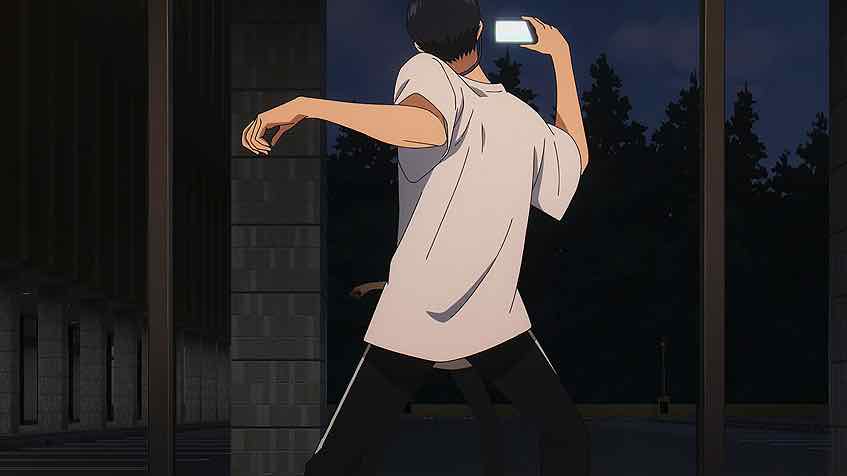 There are a couple of other notable developments here. We finally meet Chekov’s gun, the male sempai who never shows up to the club – Itsukushima Iori (Masuda Toshiki). And you can tell from the way On talks to him that he has talent. And the non-dance relationship between Wanda and Kabo continues to evolve. She stands him up for one of their window-mirror nighttime practice sessions, and he naturally assumes the worst. Turns out her dad is sick, but she doesn’t have LINE (RAIN is a new one on me, ROFL) and rightly assumes he’s bad on the phone. A very considerate act that. Turns out she deleted the app because she hates notifications – and Kabo promptly informs her that she can just turn them off.