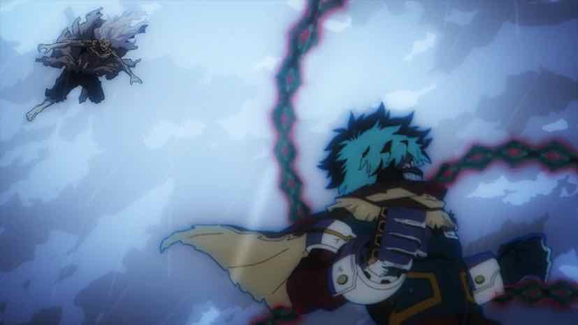 This is the reality Izuku – and the ones inside him – are dealing with. Rather than an enemy that wants to rule, they’re facing one who wants to sink Japan under the ocean forever. And what’s worse, he gets a touch in during their skirmishes and steals Shinomori – and Danger Sense, which Shinomori used to make sure he was the only one taken. That was one of the more useful quirks in Deku’s bag for this fight, and of course now not only can he no longer rely on it but must deal with it being used against him.