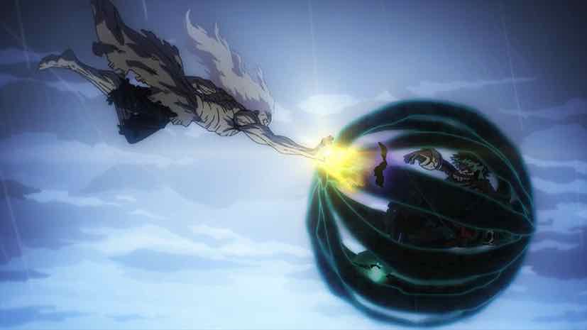 That little Best Jeanist cold open was low-key, but made its point very effectively (and apred uss a recap). From the perspective of the good guys, it would have been better if All For One had been the big bad. A lot better. He loved power and control, and in order to enjoy those things he needed stuff to wield power over. That made him predictable in a sense, as crafty as he was. Shigaraki seems to want nothing more than to be the bringer of death, destruction incarnate. He doesn’t care about power and thus needs to leave nothing standing (or living). That not only makes him more terrifying, it makes him more unpredictable.