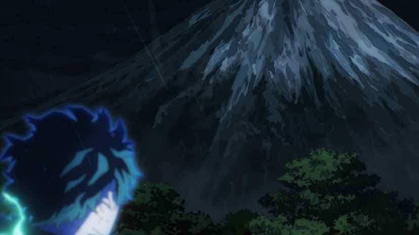 After a particularly vicious attack he only survives by wrapping Blackwhip around himself in a protective ball, Midoriya-kun is cast all the way to the base of Mount Fuji. And that location is not a coincidence, to be sure. The geology here is pretty well-known – Fuji is dormant, not extinct, and stands poised to rain destruction on the land at any moment (theoretically). If Shigaraki can reach it with his decay he can cause the volcano to erupt with tremendous force. And any volcano you can see from street level if there are no tall buildings in the way is not one you want erupting.