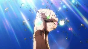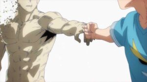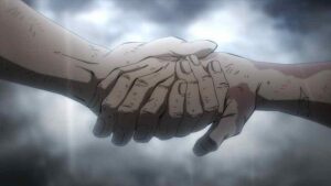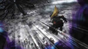 Not that I would say Horikoshi is above criticism, mind you. Or this ending (what we’ve gotten and what’s still to come). Some of it I can’t get into yet for obvious reasons, but in terms of the fight itself, that I can comment on. I have to praise Horikoshi-sensei for allowing time for a coda, something all long action series should do but often don’t. After 400+ chapters it would have been a crime to effectively end on the battlefield, because what happens to all this people after the battles are over is crucial to the way we emotionally part with the series. That said, though, he certainly didn’t leave room for four episodes worth of coda – which begs the interesting question of just what Bones intends to do with all that time.