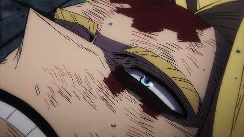 Not that I would say Horikoshi is above criticism, mind you. Or this ending (what we’ve gotten and what’s still to come). Some of it I can’t get into yet for obvious reasons, but in terms of the fight itself, that I can comment on. I have to praise Horikoshi-sensei for allowing time for a coda, something all long action series should do but often don’t. After 400+ chapters it would have been a crime to effectively end on the battlefield, because what happens to all this people after the battles are over is crucial to the way we emotionally part with the series. That said, though, he certainly didn’t leave room for four episodes worth of coda – which begs the interesting question of just what Bones intends to do with all that time.
