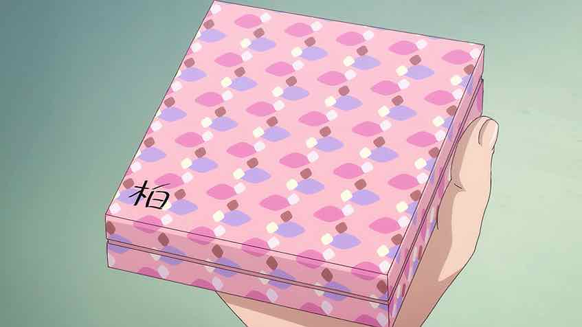 That gift did get a rise out of Kashiwada, no denying that. Did she believe his earnest denials and attempts to blame it on his sister? I would lean towards yes, but the fact that he did in fact have candy (“cider mochi”?) to give her softens the blow. He’s absolutely adorable in his abject misery at handing it over, but I think Oota kind of won this exchange – he had the balls to give Kashiwada her gift face-to-face, and she didn’t. And the surprise ending? The larva and isopod were actually sweets all along – kind of the perfect gift for a boy like him to give, actually.