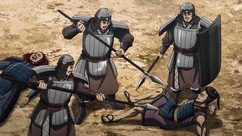 Forgive me for stating the obvious but yeah, no matter how exciting and even occasionally funny a series like Kingdom makes it out to be, battle is awful. It’s death, and everything else is just a side dish. Unfortunately for much of human history it was the only way a lot of people had to make a living or glorify their name, and the main means of foreign policy for most countries. I’ve said it before but within reason Kingdom doesn’t gloss over that too much, which is something I respect about it.