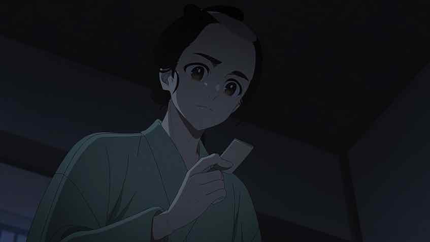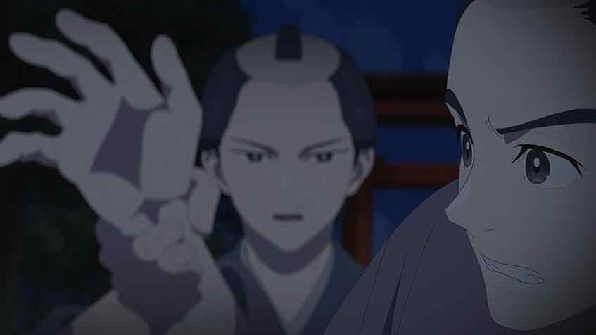 As teased last week, we got a Nikichi- well, not an origin story (who knows how far back that would go). But a background story at least. A thousand years or so, back to the Heian Era. Nikichi has had this sideman gig for a long time, it seems. For most of the intervening millennium he dutifully stood at the side of Oyoshi (Yoshino), a spirit who chooses to live among humans. Nikichi is in love with her, but those feelings were never reciprocated. In fact Oyoshi falls in love with a human named Lord Bell. But humans in any era are short-lived compared to youkai, and certainly that one. After only five years he passed away, leaving her bereft but determined to wait for him to be reborn and return to her side.