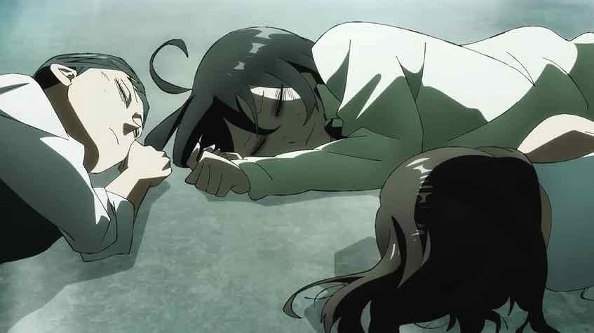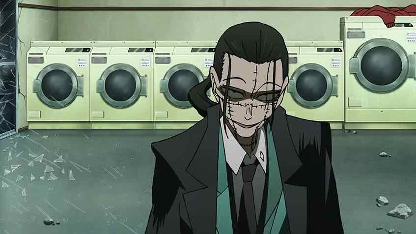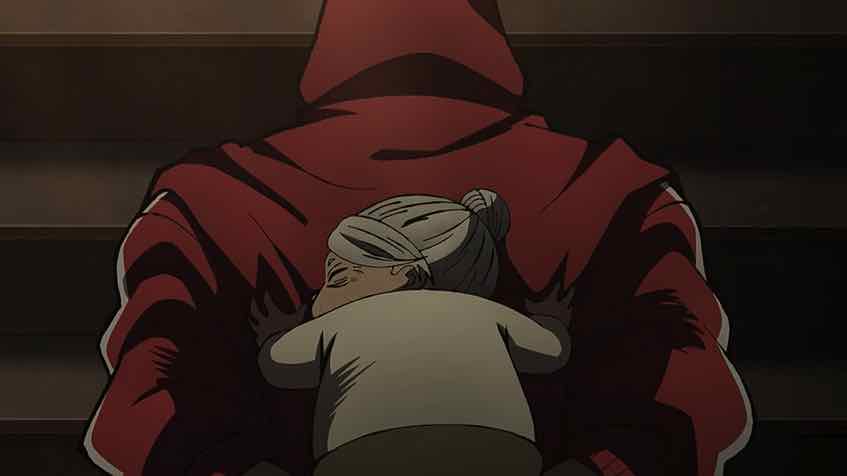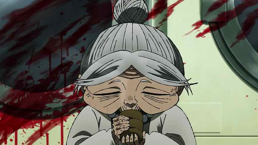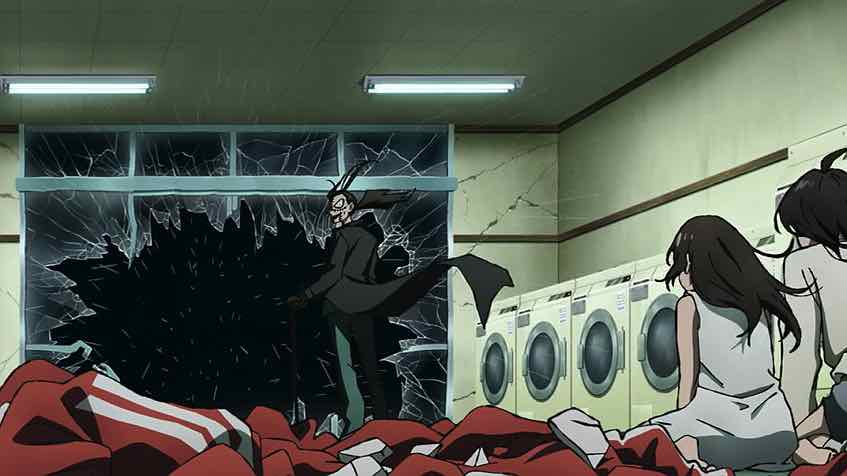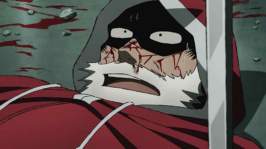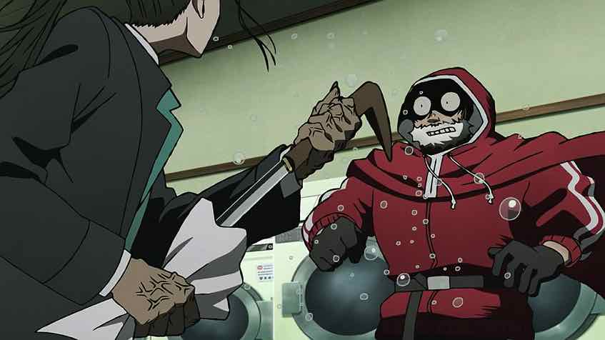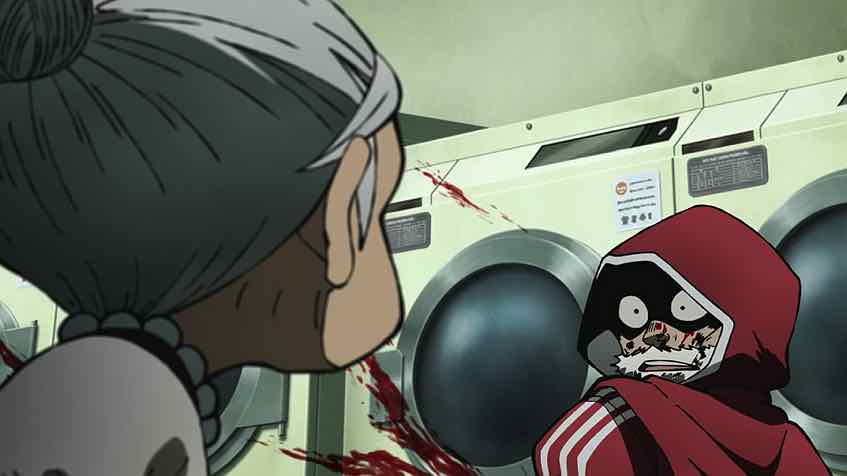 Given that Ooshibu is beating the crap out of him, that’s a problem. A Santa who can’t die and a “cyborg” whose 72 plastic (and other) surgeries have left him incapable of feeling pain – it’s a recipe for ghastly carnage. Amaya again comes through here though, figuring this out and urging Oono and Fuyumura to do their best to help. It’s not enough though (all the other children are still sleepless after all), which is why the intervention of Tetsudome Toyo makes the difference. Like Yagyuuda she’s starkly different from anyone else in the cast, and her introduction spices things up in a very positive way.