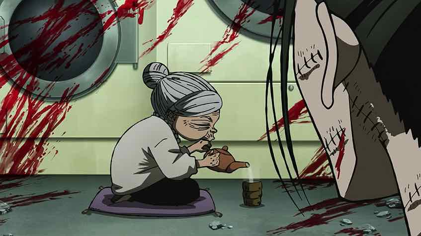You have to hand it to Nozawa Masako – 89 years old last month and still a seiyuu superstar. If she’s not a living example of what Itagaki is trying to say here, I don’t know what is. Tetsudome is the Headmistress of Daikoku Welfare Academy and like Ooshibu in her 90’s (I’m fed up with seiyuu being so much younger than their characters). But she’s embraced aging – which this twisted society has made as taboo as growing up. And she knows all Ooshibu’s weaknesses. These are the two poles of power at Daikoku, clearly. And with Sanda being a sheltered 14 year-old when all is said and done, he needs all the help he can get.