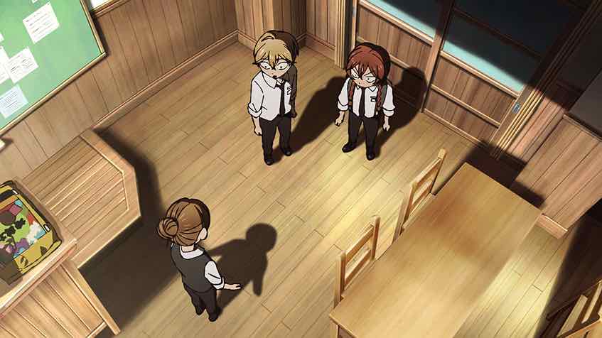 We already knew that in this twisted world, kids aren’t punished for killing adults because adults don’t matter. But seeing the results of that first-hand is pretty chilling. Class 2-10 is a class where the kids who kill adults (or, apparently, commit other serious crimes) are sent. There are no teachers as no adult wants anything to do with them. And who could blame them, given that these are murderers who’ve learned the lesson that there are no consequences for the act? Their frozen smiles are truly something out of a horror movie. And they’re interested in Santa Claus, which is why they lock Nico and Sanda in the room to grill them about the subject.