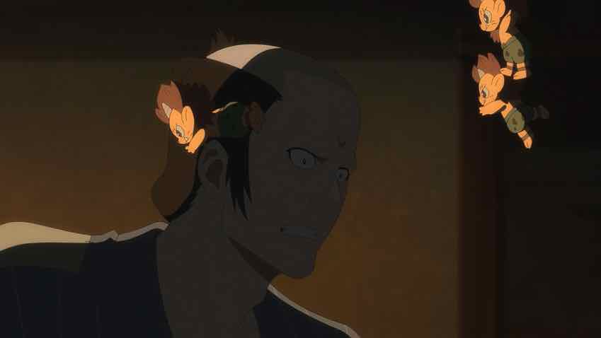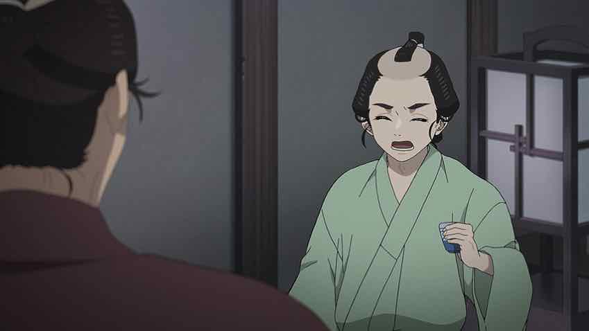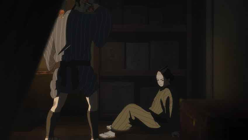 There’s a very interesting exchange between Eikichi and Ichitarou about all this, and more. It reveals just how disconnected Ichitarou is about the lives of common people. Eikichi comes off extremely cold and practical here – about Ichitarou, about Oharu and her love for Ichitarou, and about himself. It reflects the undercurrent of darkness that provides a stark contrast to Shabake’s warm and comforting youkai SOL vibe. That as much as anything is keeping me connected with Shabake at the moment, if not yet fully engrossed.