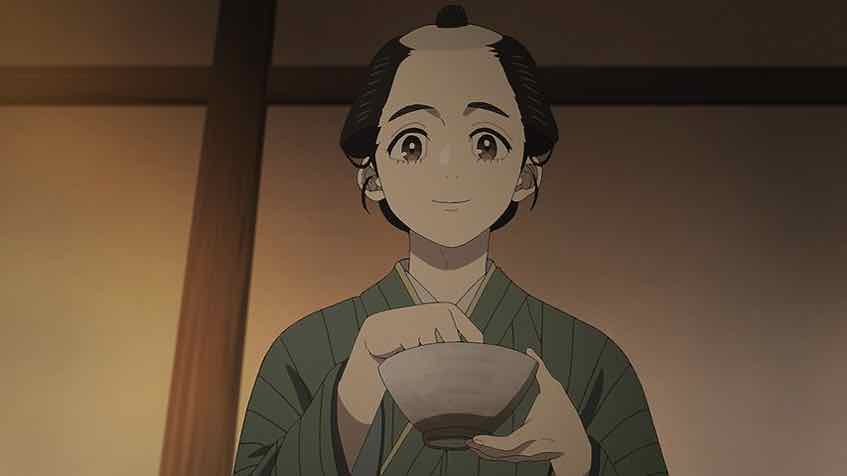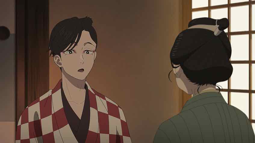 The murder of a temporarily unnamed apothecary certainly sets the shop and household into a panic. Nikichi pulls his usual strongarm tactic and tries to strangle a confession out of Eikichi when it comes to the young master’s going’s on. The truth about his secret trips to see Matsunosuke comes out – though it seems as though Ichitarou and Matsunosuke (who’s working as an apprentice at a cooperage) have actually met yet. Nikichi and the chief head off in search of answers, and Sosuke – who’s been searching on his own – finds Ichitarou on his own at a shrine.