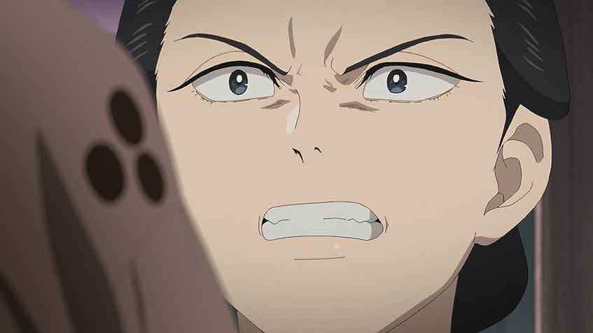 The murder of a temporarily unnamed apothecary certainly sets the shop and household into a panic. Nikichi pulls his usual strongarm tactic and tries to strangle a confession out of Eikichi when it comes to the young master’s going’s on. The truth about his secret trips to see Matsunosuke comes out – though it seems as though Ichitarou and Matsunosuke (who’s working as an apprentice at a cooperage) have actually met yet. Nikichi and the chief head off in search of answers, and Sosuke – who’s been searching on his own – finds Ichitarou on his own at a shrine.