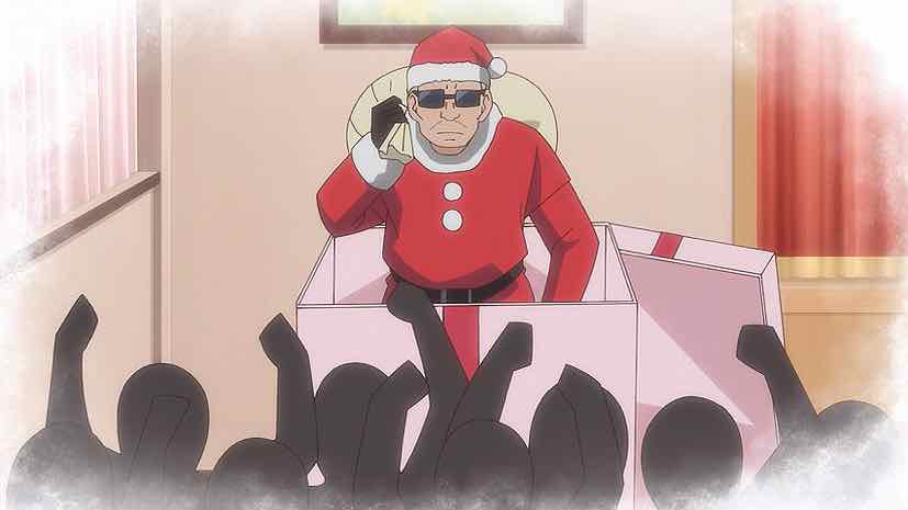 Would a 14 year-old not know about gift exchanges? Maybe – it seems both leads were taken by surprise at the random element. Fortunately it’s the Surströmming (an incredibly stinky fermented fish) that Oota’s big sister bought that saves the day. It also leaves Oniwarada-sensei trapped in a box in an empty room after the reek clears it. Oniwarada is kind of a doof but I feel for him – middle school teachers desperate to be seen as cool are definitely a thing. Kashiwada’s present – a scarf – is as earnest and sincere as Oota’s was juvenile and overcompensatory. All he can do in the moment is reciprocate with his own gloves, which despite being about 5 cm too long in the fingers make her happy (if you can tell).