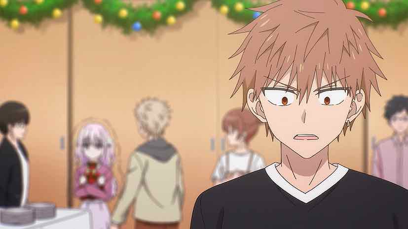 Kashiwada-san and Oota-kun certainly give Sata plenty to observe. The interlude with Kashiwada’s bangs (she’s avoiding Oota because of an imperceptible difference from the usual) is quite the spectacle. It’s absolutely bonkers to let any middle school boy trim your hair, never mind Oota-kun. But she’s in love and says yes, and this ends predictably – though to be clear, Oota did legitimately try his best. Next up is the class Xmas party. Kashiwada is transparently in love – she flat-out asks Oota to attend. And it should be noted that in spite of dissing it, he meekly agrees.