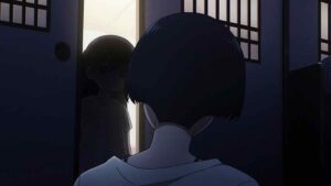 All this is complicated immeasurably by the fact that Mizuha is not really Mizuha. At least some of the time. Izumi is a “fully merged” Nokker (to use terms coined by Bon and Fushi). To wit, the person is dead and the Nokker is effectively a replacement. But Mizuha is “half-merged” – the real owner is still in there, and control passes back and forth at the Nokker’s will. Izumi committed the sin of wishing she were dead, which is effectively a “let the right one in” invitation to a Nokker. And let me be clear – a parent threatening suicide is child abuse, no more and no less. Izumi was indeed a rotten mother.