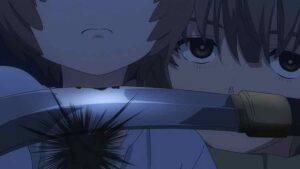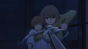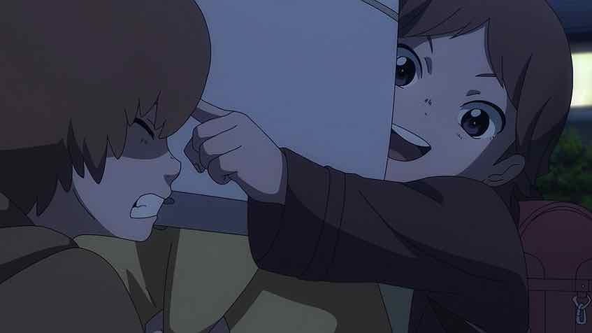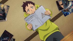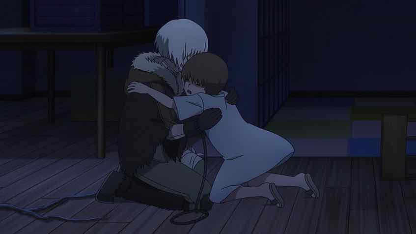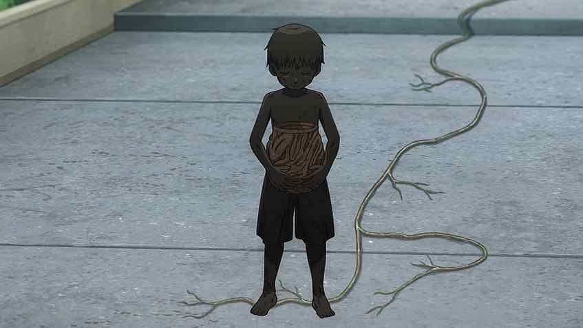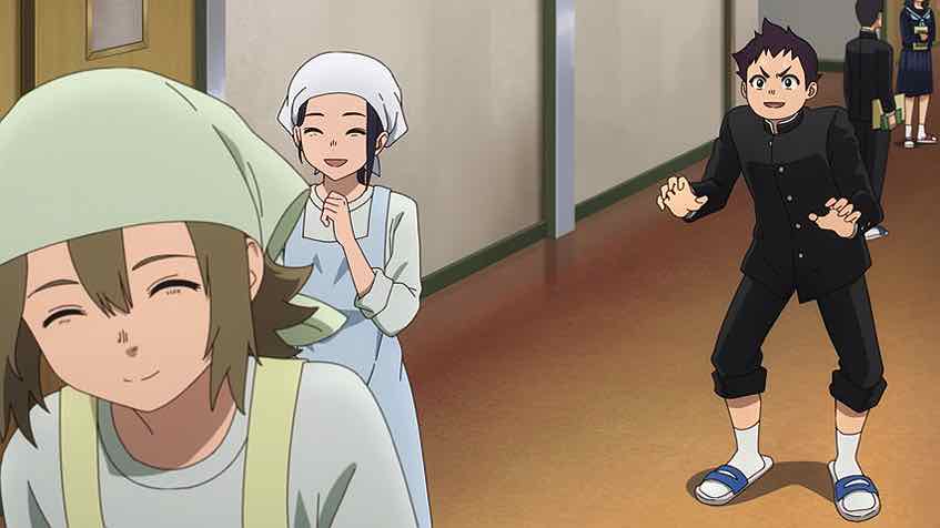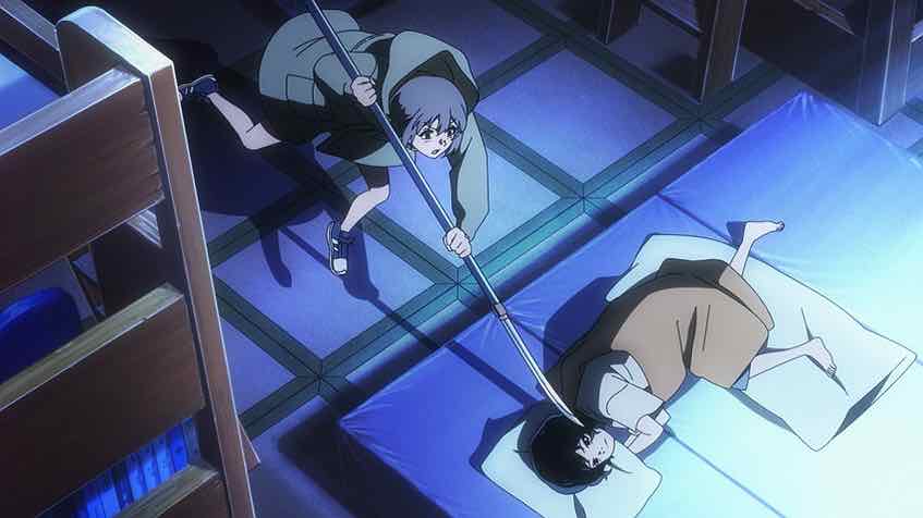 We also got a hilarious diversion with Fushi trying to figure out how to delete Izumi’s photos (we still don’t know why she asked him to). Needless to say even by Japanese schoolkids’ shockingly low standards Fushi is PC-illiterate. After trying to rip open Izumi’s monitor he finally gives up and tosses it into the sea. This nets him a scolding from Aiko and of course, does nothing whatsoever to actually delete the photos (freeing them up to Chekov’s Gun later). One of Yuki’s insights is that the nokkers will probably try to take out his creator as a means of getting at Fushi, so Fushi heads over there to try and head that off at the pass.