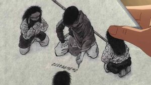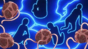 Satoru proves that he still has plenty of The Beholder in him, and he deals with Funa’s nokker rather easily. The one inside Michi, on the other hand, he leaves be – as there’s nothing else left inside her. And this is the rock once more rolling down the hill for Fushi – as much as he wants the nokker thing to be a slam-dunk, it has moral and ethical nuances. And while Satoru pointing out that Fushi himself isn’t so different from the nokkers in how he self-identifies is a low blow, there’s more than a little truth to it. Satoru’s advice to just give this fight up is probably for Fushi’s own good, but I just don’t think he’s capable of following it.