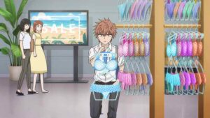 Oota-kun is realistically a middle-school boy – clever about some things but lacking even a dash of common sense about most. I’m not convinced Sada-kun didn’t intentionally lure him into going to the swimsuit shop (that’s the sort of low-key troll he excels at) but either way, all Akito had to do was just tell the girls why he was there. But no, he hides in a forest of bikinis and one-pieces and stammers his way through excuses when he’s finally caught. And, as Sada points out, he could just have waited outside for the girls to come out.