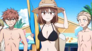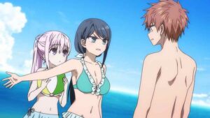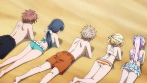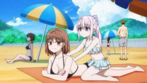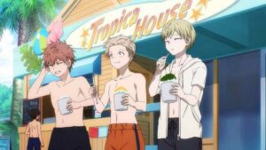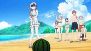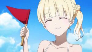 As is often (probably usually) the case with series like this, KashiOota is best when it focuses on the main pair. They remain both charming and funny, and drive the engine here for the most part (though Sada and Tadokoro are both major net-pluses). Once more we spin the wheel of romcom standards, and this time it stops on “beach episode”. And because this show loves those tropes so much, it manages to leverage three out of a single episode – logically adding “shopping for swimsuit” and “test of courage” to the brew.