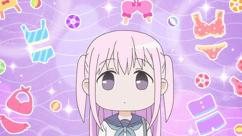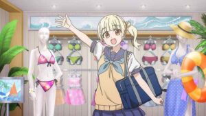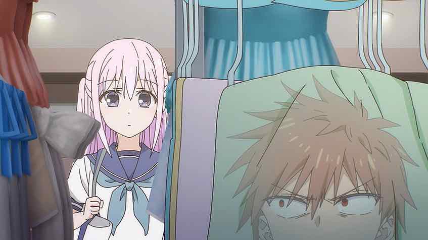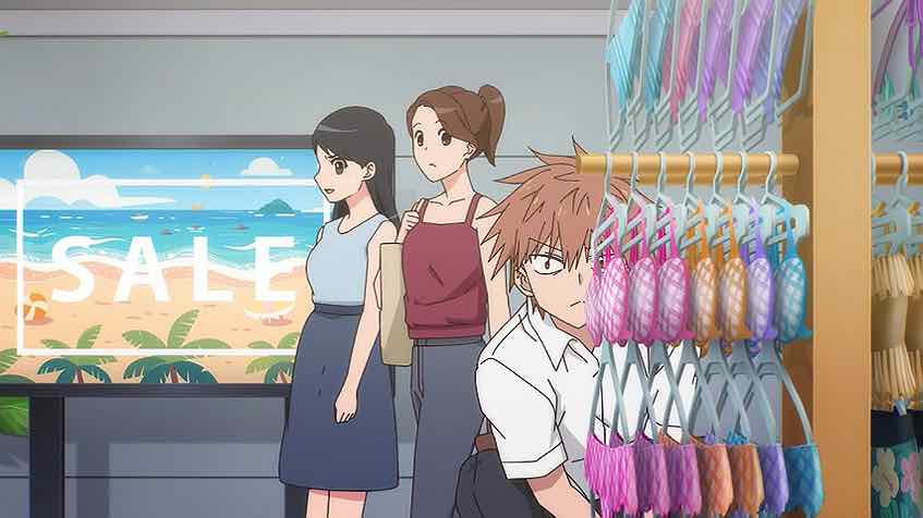 Oota-kun is realistically a middle-school boy – clever about some things but lacking even a dash of common sense about most. I’m not convinced Sada-kun didn’t intentionally lure him into going to the swimsuit shop (that’s the sort of low-key troll he excels at) but either way, all Akito had to do was just tell the girls why he was there. But no, he hides in a forest of bikinis and one-pieces and stammers his way through excuses when he’s finally caught. And, as Sada points out, he could just have waited outside for the girls to come out.