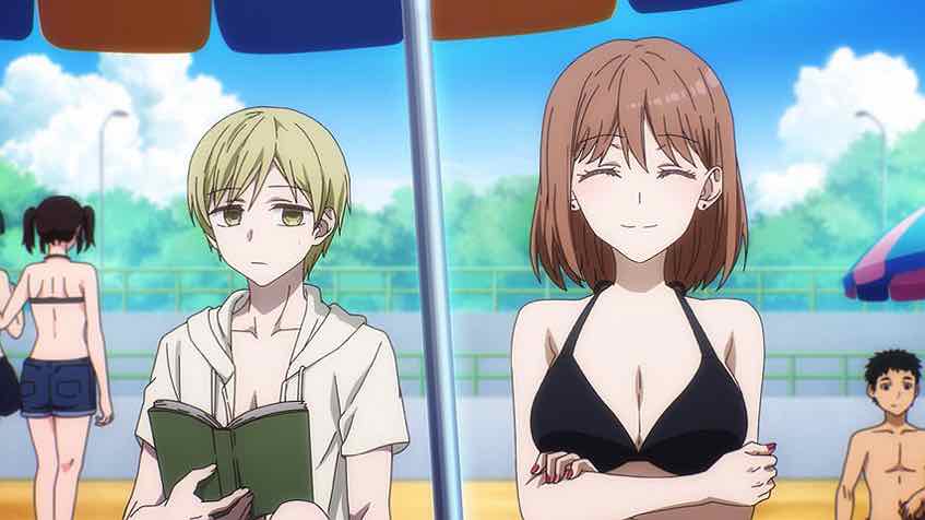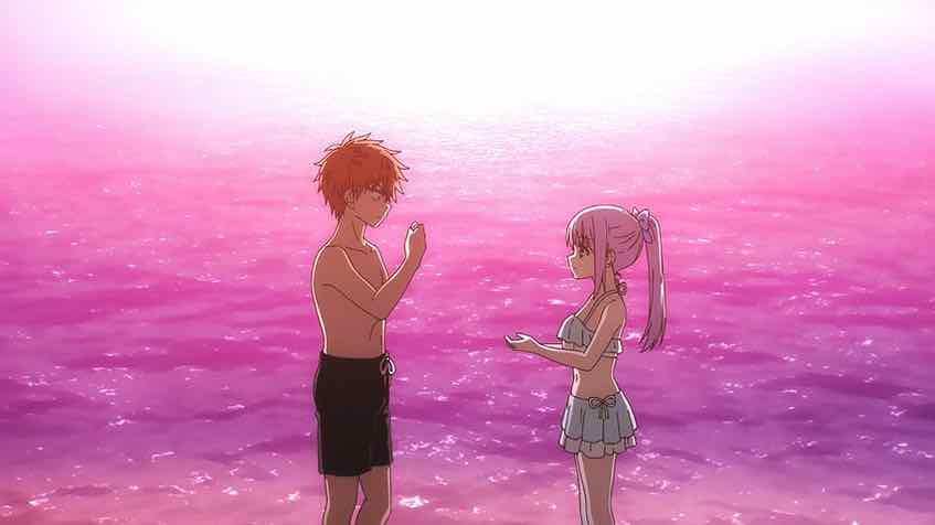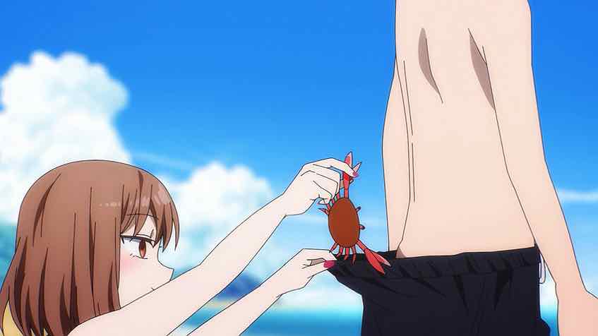 The beach itself is Onee-san at her worst (older siblings, man). Her trolling has none of the elegance of Sada’s – she’s just an ogre. None of these gags really worked for me to be honest. I did think we were going the indirect kiss route on that beach ball, but that was a feint. Still, it was an interesting moment – rather than take the schoolboy route Sada expected, Oota just calmly helped Kashiwada-san out. Reflexively he’s slipping more and more into boyfriend mode, it seems. And not a moment of snark when she handed him the seashell she picked out.