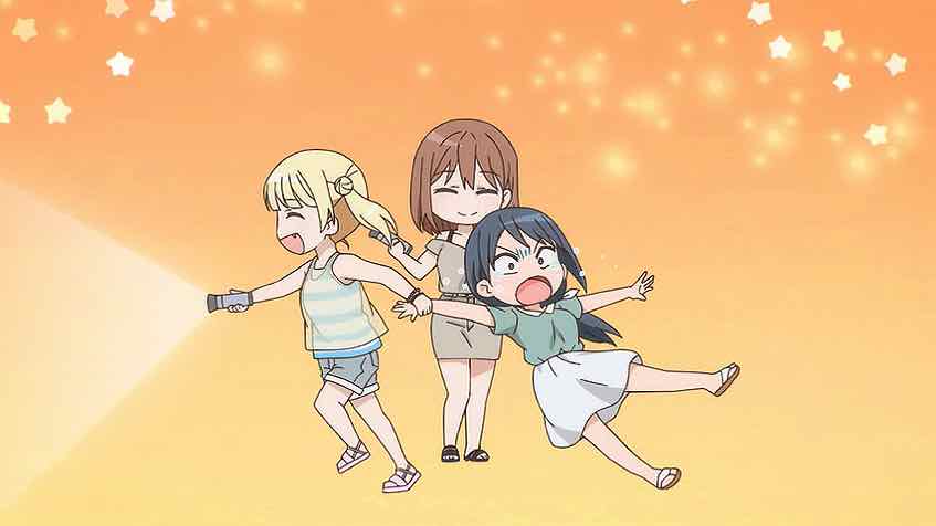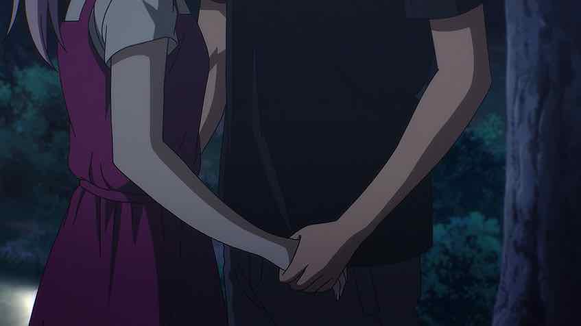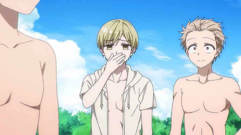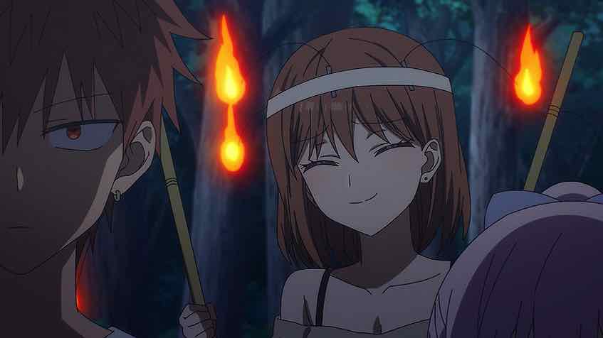 Speaking of boyfriend mode, Akito observing that Sada and Kashiwada were getting “chummy” was obviously a huge tell. Sada has the secret sauce that not even Onee-san can break – he just lets everything wash over him and makes wry observations. The big jump scare (no, not the konnyaku – why was Akito even carrying that?) that sent Kashiwada-san running off into the woods was another relationship-advancer. When she’s scared, she looks for Akito – and when he finds her, he just takes her hand and accepts her hug. It’s all but official at this point (and older siblings should just butt the hell out).