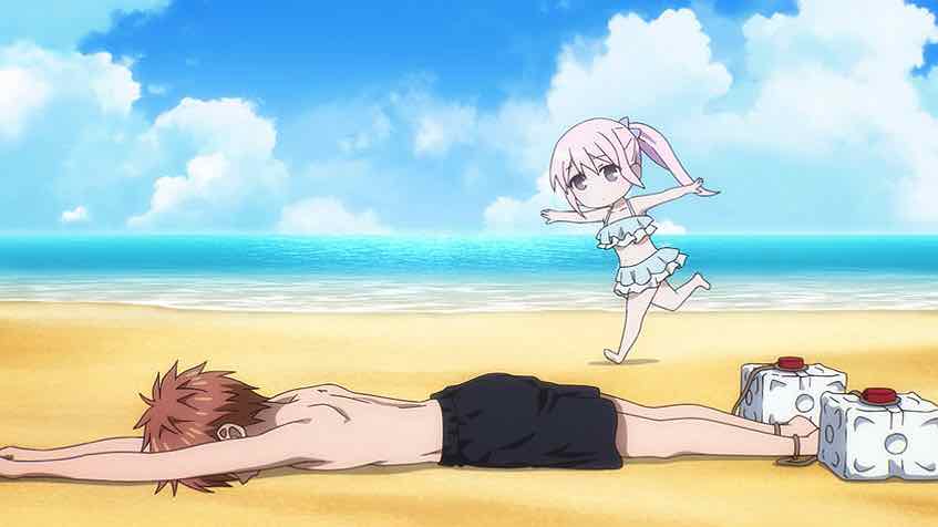 As is often (probably usually) the case with series like this, KashiOota is best when it focuses on the main pair. They remain both charming and funny, and drive the engine here for the most part (though Sada and Tadokoro are both major net-pluses). Once more we spin the wheel of romcom standards, and this time it stops on “beach episode”. And because this show loves those tropes so much, it manages to leverage three out of a single episode – logically adding “shopping for swimsuit” and “test of courage” to the brew.