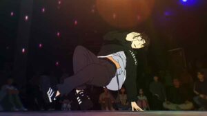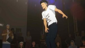 Watching this duo go at it is utterly fascinating. The dancing looks great first of all – and I mean the animation. We even get real facial expressions. But they’re just so distinct, these two. Iori’s dancing continues to appeal to me the most in aesthetic terms. He never seems to be trying too hard – he just flows. He’s relaxed, liquid. It may seem incongruous to recall Fred Astaire – a dance removed not just by an era, but several – when talking about a teenaged Japanese house dancer. But dancers are dancers – no matter the style or time, I think more unites than divides them. I’ve seen Astaire’s style described with “No matter how fast Astaire moves, he never seems to be working very hard.”, and I think that fits Iori like a glove.
