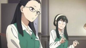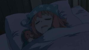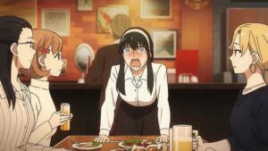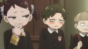 The business between Loid and Austin was kind of a throwaway, but I suppose the intent was to show him actually working as a psychiatrist as we don’t get to see that very often. I’m not sure his advice to Austin-sensei was especially helpful – “flee like the wind” would probably be more clinically effective. But at least he was trying. Yor getting drunk with her co-workers was likewise forgettably inoffensive, though I always wonder how it is someone living a secret life could allow themselves to get publicly drunk like that. But then Yor’s third of the story has always made the least sense anyway.